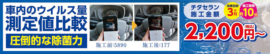 チタセランを施工すれば様々なウイルス・雑菌など幅広い有害物質の除去はもちろん、一般的な除菌剤と比べても圧倒的に強力な除菌効果を得る事が出来ます。